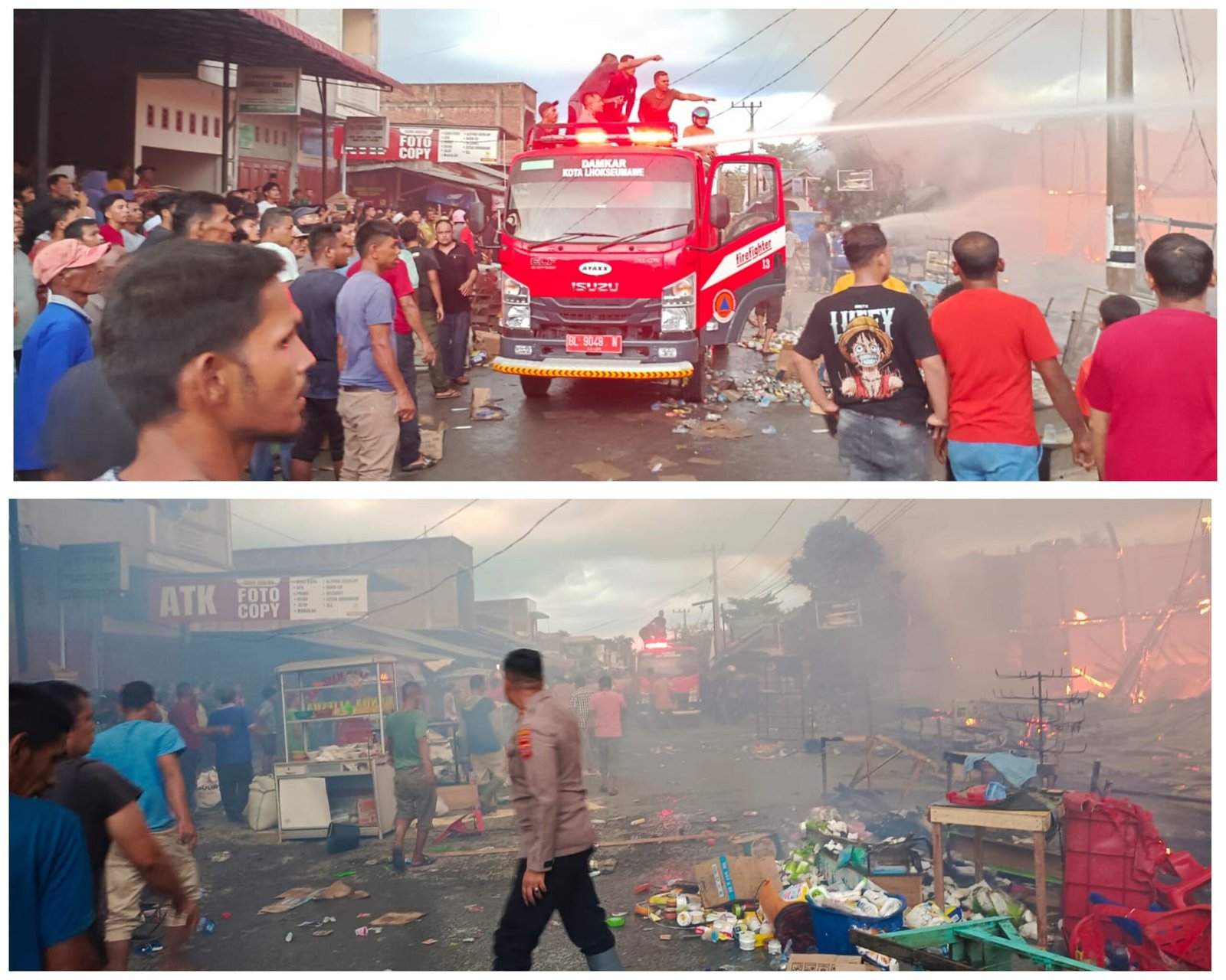 Kebakaran melanda 10 unit ruko semi permanen di Keude Blang Ara Desa Krueng Manyang, Kecamatan Kuta Makmur, Kabupaten Aceh Utara, pada hari Rabu tanggal 5 Juni 2024, sekitar pukul 18.00 WIB.