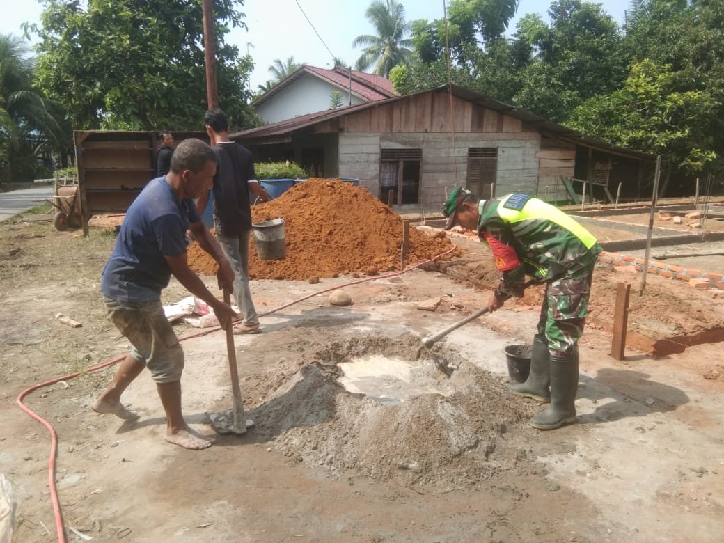 Wujud kebersamaan dan meningkatkan kerja sama di wilayah binaan, Babinsa Koramil 08/Rantau Sertu Tomi Irawan melaksanakan kerja bakti membantu warga membangun Rumah Tidak Layak Huni milik Ahdi Firmansyah di Desa Suka Mulia, Kecamatan Rantau, Kabupaten Aceh Tamiang, pada Kamis (02/05/2024).