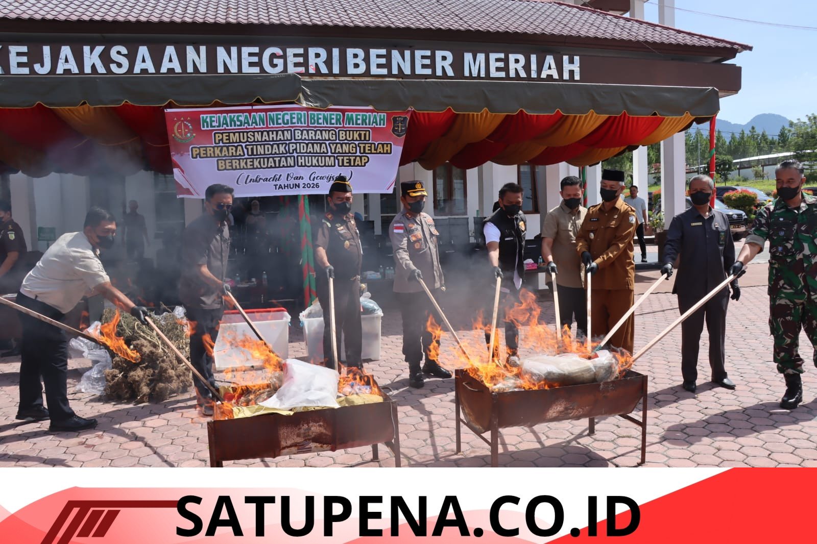 Bener Meriah- Satupena.co.id:  Kejaksaan Negeri (Kejari) Bener Meriah memusnahkan barang bukti dari puluhan perkara yang telah berkekuatan hukum tetap (inkracht), Selasa (28/4/2026). Pemusnahan dilakukan di halaman kantor Kejari setempat dan melibatkan unsur aparat penegak hukum serta pemerintah daerah.
