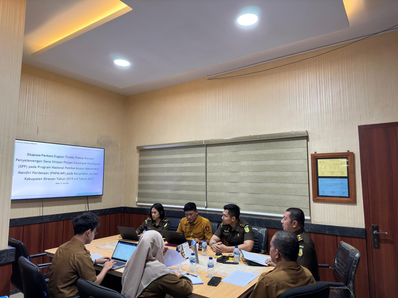 Bireuen,satupena.co.id – Jaksa Penyidik pada Seksi Tindak Pidana Khusus Kejaksaan Negeri Bireuen melakukan ekspose terkait Permintaan Audit Perhitungan Kerugian Keuangan Negara bersama Tim Inspektorat Provinsi Aceh bertempat diruang rapat Irbansus Inspektorat Aceh Provinsi Aceh.Senin, 01 Juli 2024