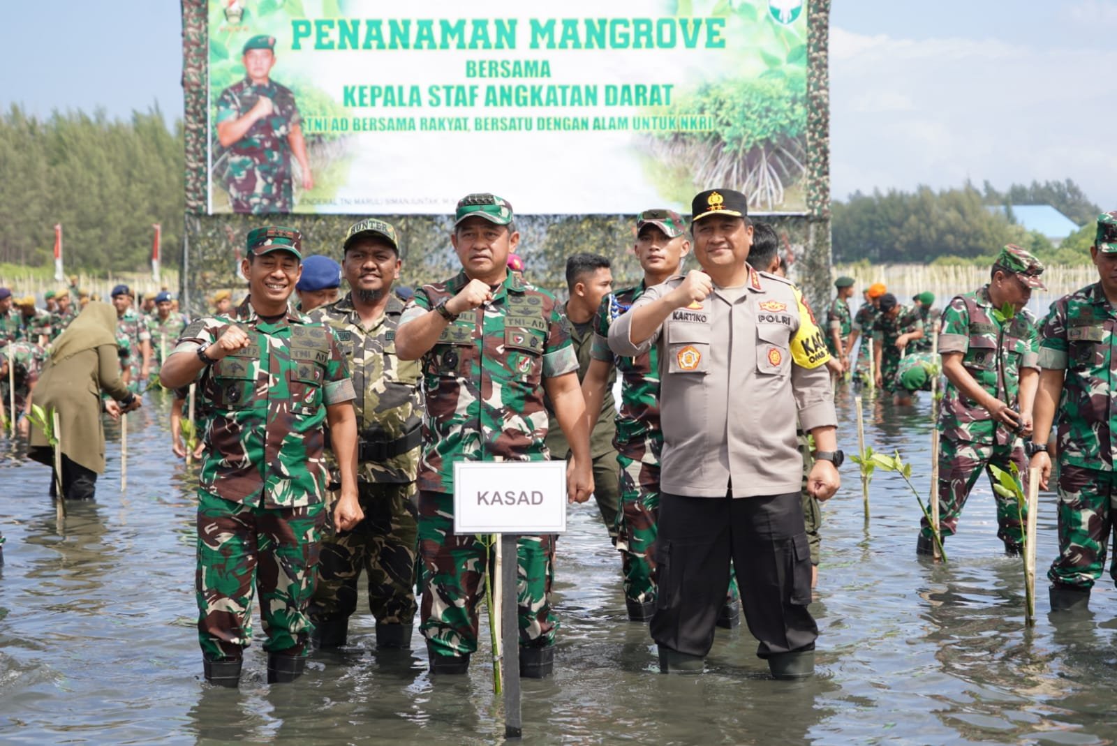 Penanaman bibit mangrove tersebut dipusatkan di Kota Banda Aceh, tepatnya di Ds. Gampong Blang, Kec. Meuraxa, Kota Banda Aceh ini, dipimpin langsung oleh oleh Kepala Staf Angkatan Darat (Kasad) Jenderal TNI Maruli Simanjuntak, M.Sc, dengan jumlah sebanyak 8.500 bibit mangrove, ditanami oleh 1.625 Prajurit dan masyarakat setempat di lahan seluas 10,5 HA.