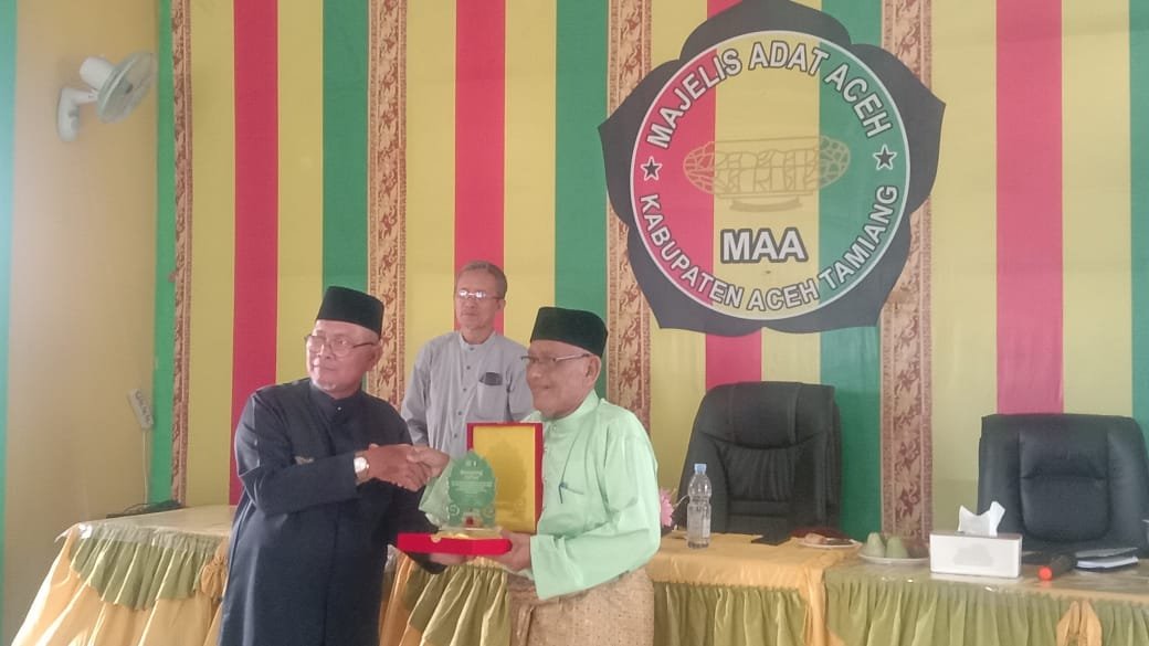 Selanjutnya penyerahan senjata khas Aceh Tamiang berupa tumbok Lada oleh Ketua MAA Aceh Tamiang, Drs. M. Djuned kepada Ketua MAA Aceh Jaya, Dr. Tgk H. Anwar Ibrahim dan dilanjutkan dengan diskusi dan pemaparan materi oleh fasilitator m. Syarif dalam rangka untuk membangun dan memperkokoh lembaga adat istiadat yang ada di Provinsi Aceh.(Basyar).