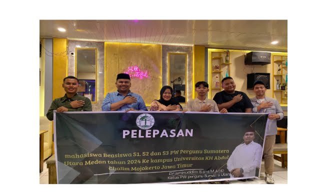 Medan- satupena.co.id: Ketua Pengurus Wilayah (PW) Persatuan Guru Nahdlatul Ulama (PW.PERGUNU) Sumatera Utara, Dr. Aminuddin, S.Sos, MA.C.IP, secara resmi melepas para mahasiswa penerima beasiswa Universitas KH. Abdul Chalim menuju Pacet, Mojokerto, Jawa Timur.
