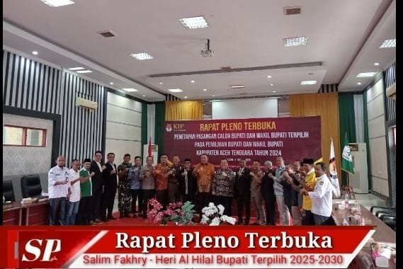 Kutacane: satupena.co.id- Komisi Independen Pemilihan (KIP) Aceh Tenggara resmi menetapkan pasangan Salim Fakhry-Heri Al Hilal sebagai Bupati dan Wakil Bupati terpilih periode 2025-2030.