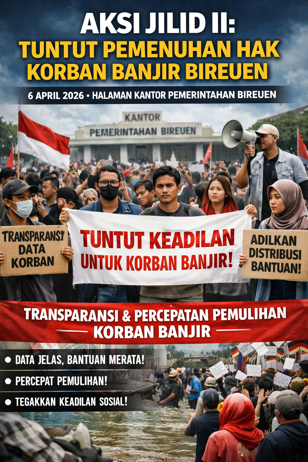 Bireuen –Satupena.co.id:  Koalisi Gerakan Sipil Kabupaten Bireuen kembali menyerukan Aksi Jilid II sebagai bentuk kepedulian dan komitmen bersama dalam memperjuangkan pemenuhan hak-hak korban banjir di wilayah tersebut.