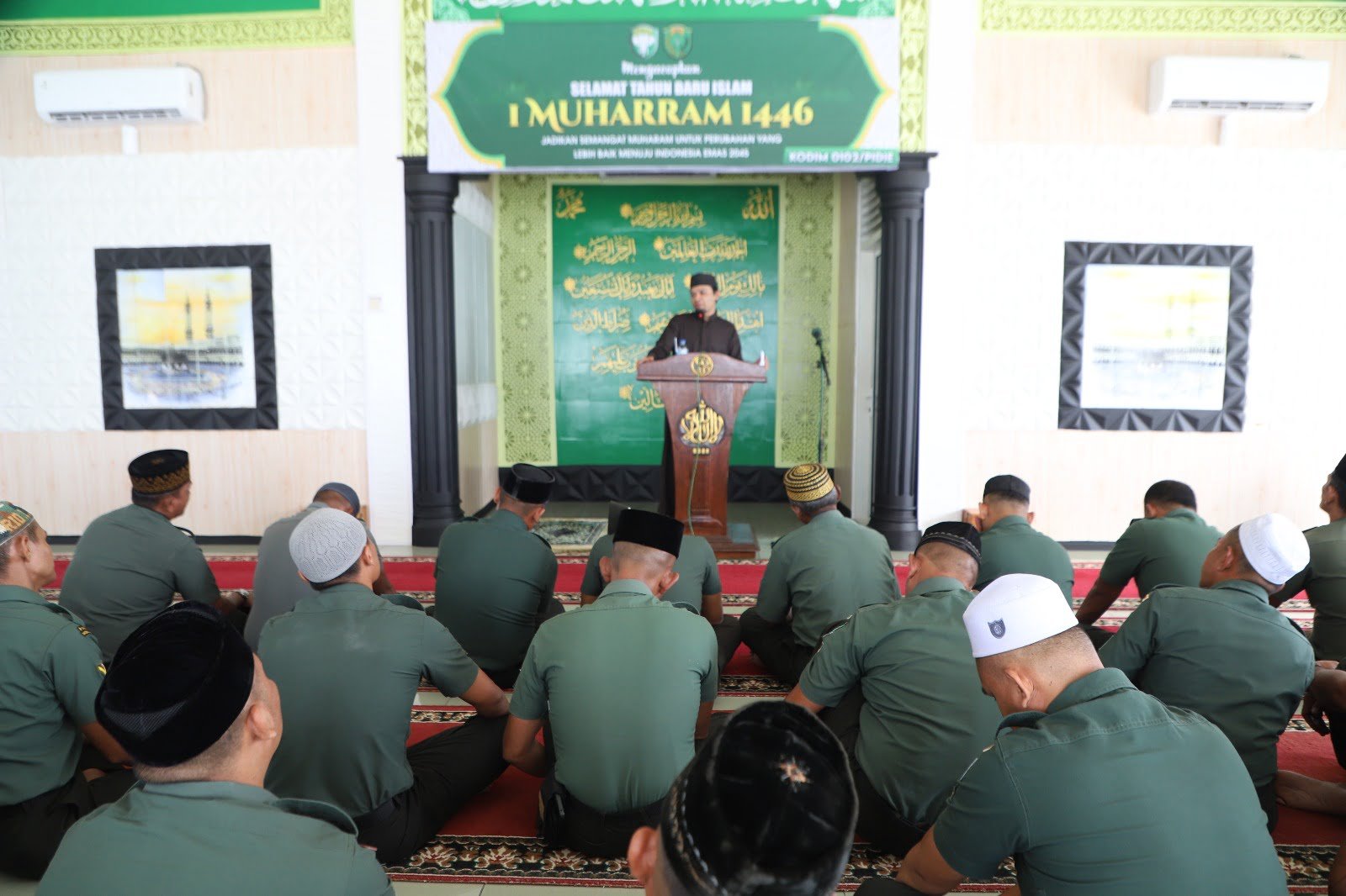 Dalam sambutannya, Dandim 0102/Pidie Letkol Inf Abdul Jamal Husen menyampaikan bahwa tahun baru Hijriah adalah hari penting bagi umat Islam. “Tahun baru Islam diperingati untuk mengingat peristiwa hijrah Nabi Muhammad SAW dari Mekkah ke Madinah bersama para sahabatnya. Ini menjadi momentum untuk introspeksi dan transformasi diri,” ujar Letkol Inf Abdul Jamal Husen.