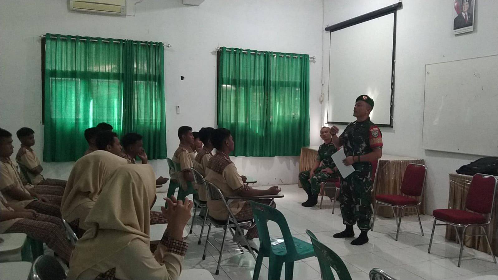 Serda Sapriadi dan Serda M.Nasir sebagai narasumber di depan siswa dan siswi menyampaikan berbagai keuntungan dan manfaat yang akan diperoleh jika menjadi bagian dari TNI AD seperti kesempatan untuk mengabdi kepada Negara, pelatihan dan pendidikan yang berkualitas, serta prospek karir yang menjanjikan.