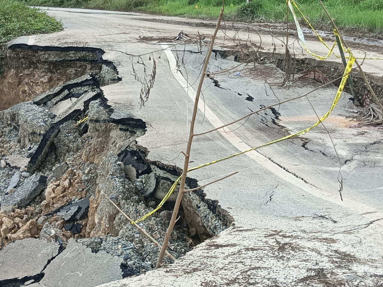 Berdasarkan hasil pantauan tim media di lapangan, ruas jalan lintas antar kabupaten yang baru selesai dikerjakan dengan metode tahun jamak (multiyears) 2022-2024 kini sudah mengalami kerusakan parah.