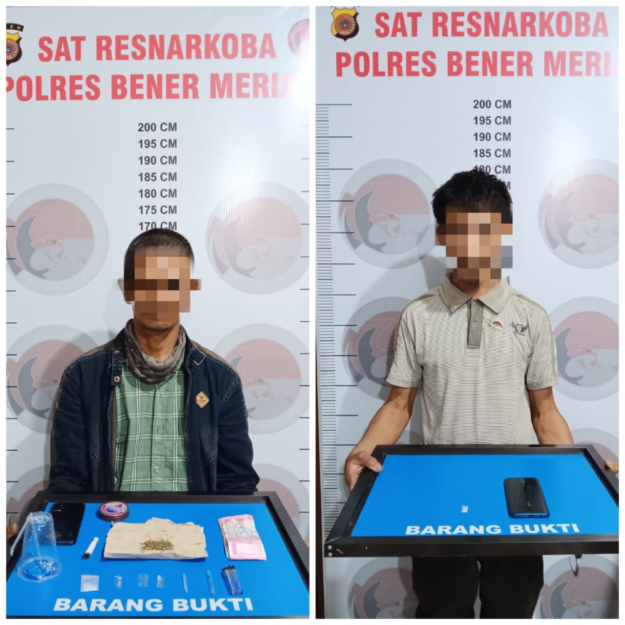 di Kampung Cemparam Lama , Kecamatan Mesidah, Kabupaten Bener Meriah lantaran kedua tersangka diduga terlibat dalam penyalahgunaan Narkotika jenis sabu dan ganja.