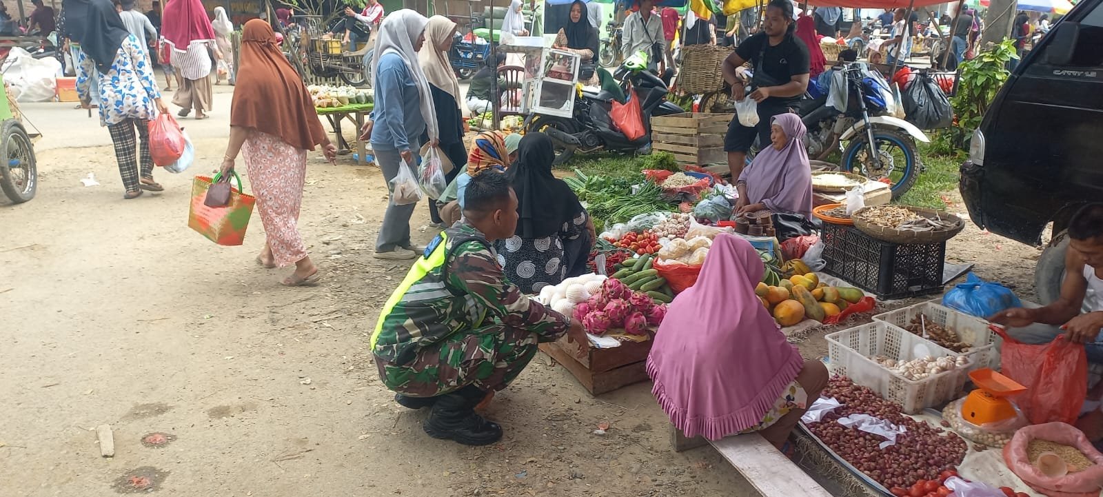 Kopda Niko Babinsa Koramil 07/Kejuruan Muda melaksanakan pengecekan harga dan persediaan sembako yang ada di pasar Tradisional yang terletak di Desa Sungai Liput, Kecamatan Kejujuran Muda, Kabupaten Aceh Tamiang, pada Minggu (09/02/2025)