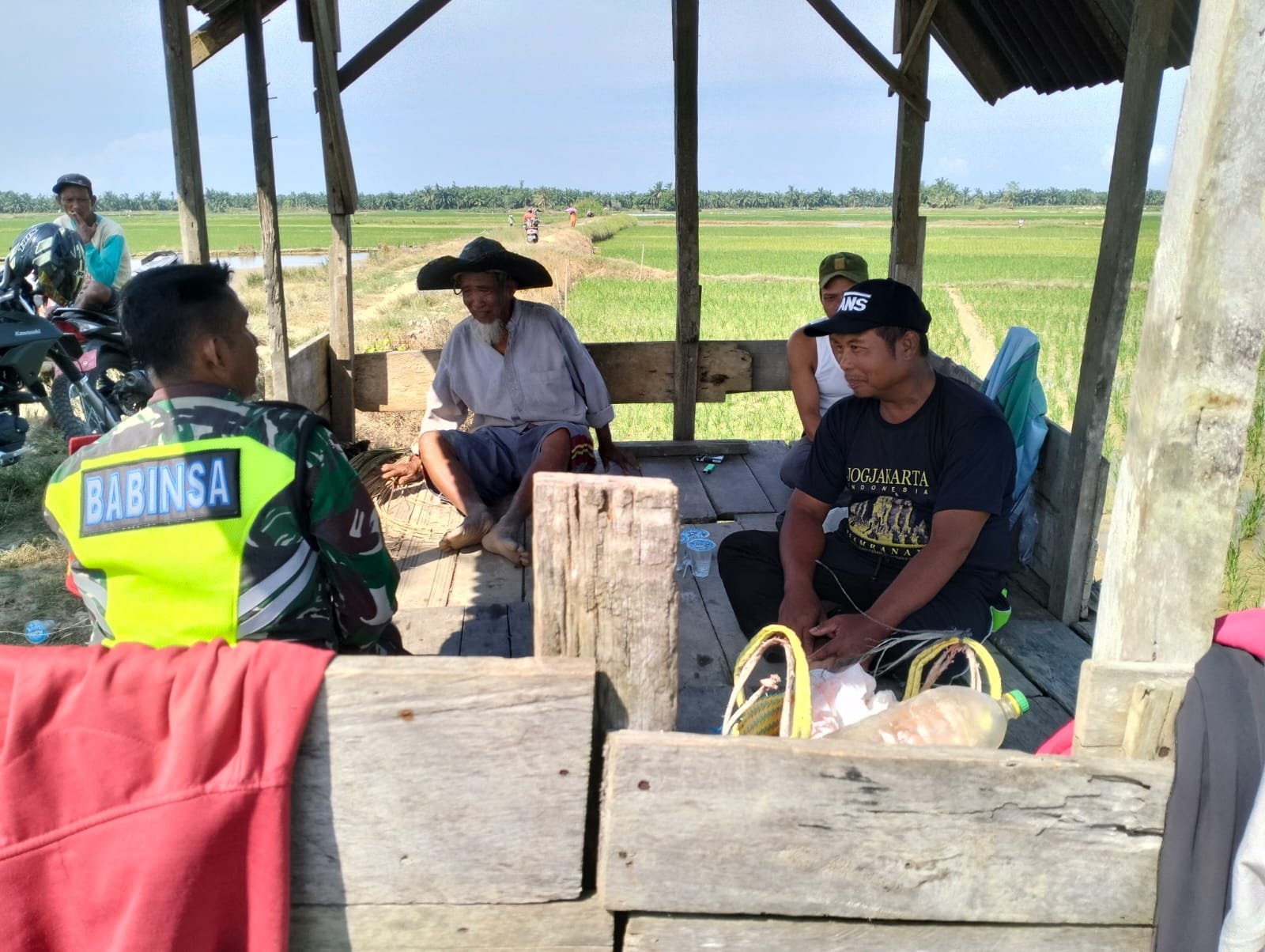 Babinsa Koramil 04/Bendahara, Kodim 0117/Aceh Tamiang Koptu Faisal anjangsana ke wilayah guna mendengarkan keluhan petani terkait kendala dalam mengolah lahan pertanian selama musim tanam.