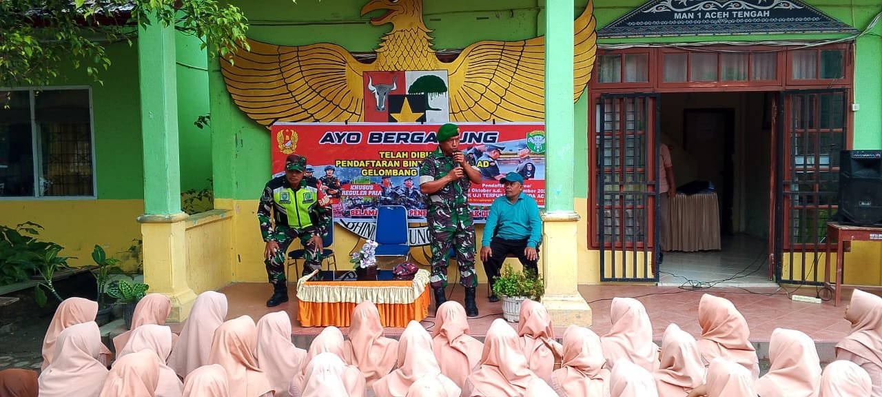 Takengon -satupena.co.id: Koramil / 02 Bebesen, Kodim 0106 Aceh Tengah melaksanakan Kegiatan di halaman sekolah MAN Negeri 1 Takengon dan dihadiri oleh puluhan peserta, didampingi oleh guru. Dalam rangka mempersiapkan generasi muda yang tangguh dan disiplin, pihak TNI Angkatan Darat menggelar sosialisasi khusus bagi anak-anak yang berkeinginan bergabung dalam seleksi Bintara TNI AD gelombang 2.