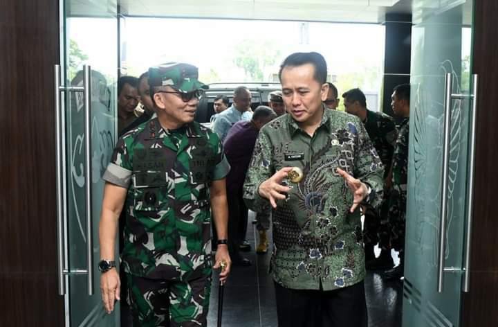 Medan-Satupena.co.id:Penjabat (Pj) Gubernur Sumatera Utara (Sumut), Agus Fatoni bersama dengan Pangdam I/Bukit Barisan, Mayjen TNI Mochammad Hasan membahas pelaksanaan Pekan Olahraga Nasional (PON) XXI Aceh-Sumut Tahun 2024. Kegiatan ini berlangsung di Ruang Kerja Pangdam I/Bukit Barisan, Balai Prajurit Makodam I/Bukit Barisan, Medan, Kamis (27/06/2024).