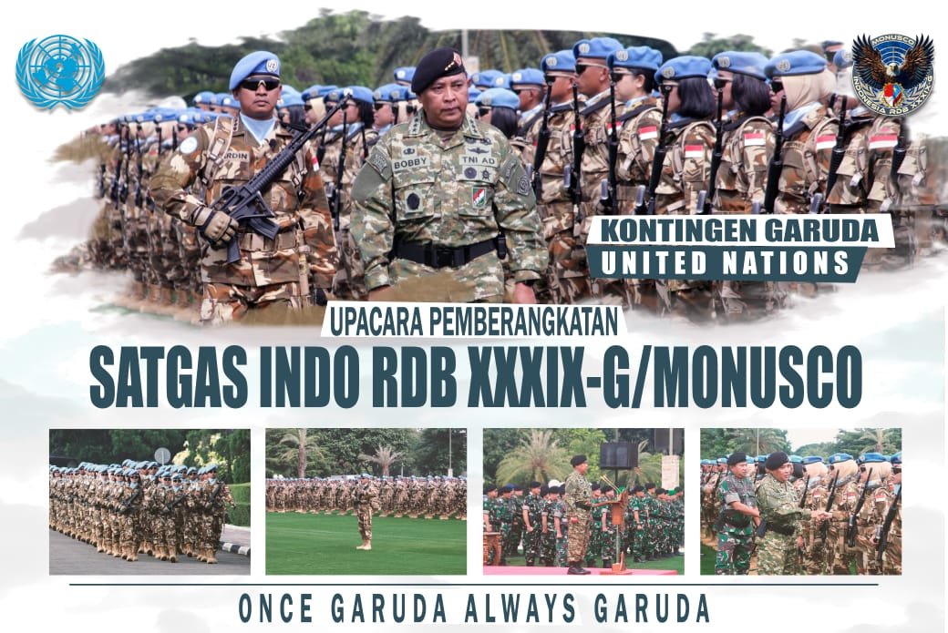 Mabes TNI, Cilangkap, Satupena.co.id.– Jumat (3/10/2025). Sebanyak 850 prajurit TNI yang tergabung dalam Kontingen Garuda (Konga) diberangkatkan menuju Republik Demokratik Kongo (DRC) sebagai Satgas BGC TNI Konga XXXIX-G/MONUSCO. Pasukan ini dipimpin langsung oleh Kolonel Inf Fardin Wardhana, M.P.M., selaku Dansatgas untuk menggantikan Satgas BGC TNI Konga XXXIX-F yang segera menyelesaikan masa tugasnya di Kongo bulan Oktober 2025 ini.