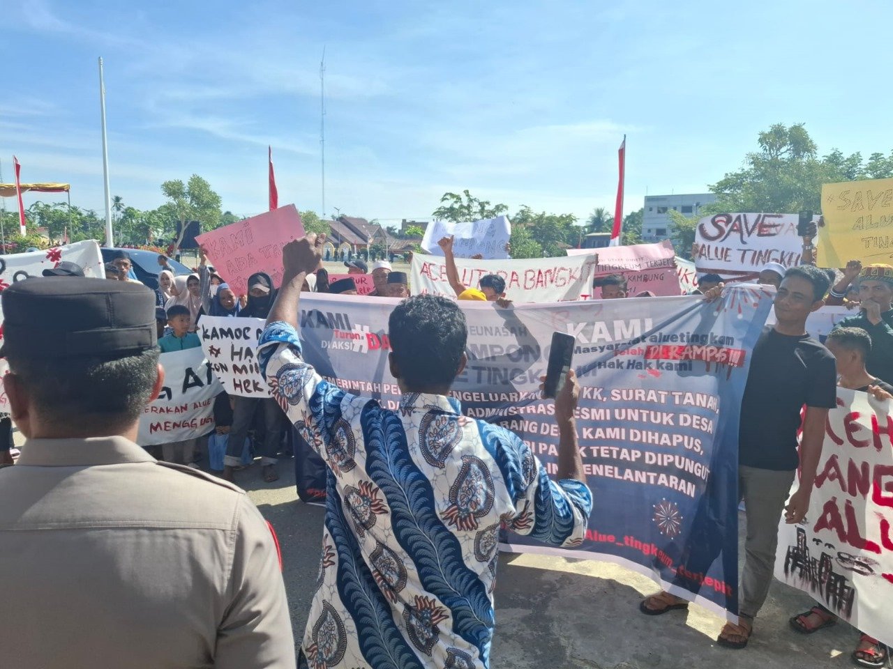Koordinator aksi, Khairoel Fauzar, menegaskan bahwa warga menuntut pengembalian status desa serta pengakuan sah terhadap dokumen-dokumen kependudukan mereka.
