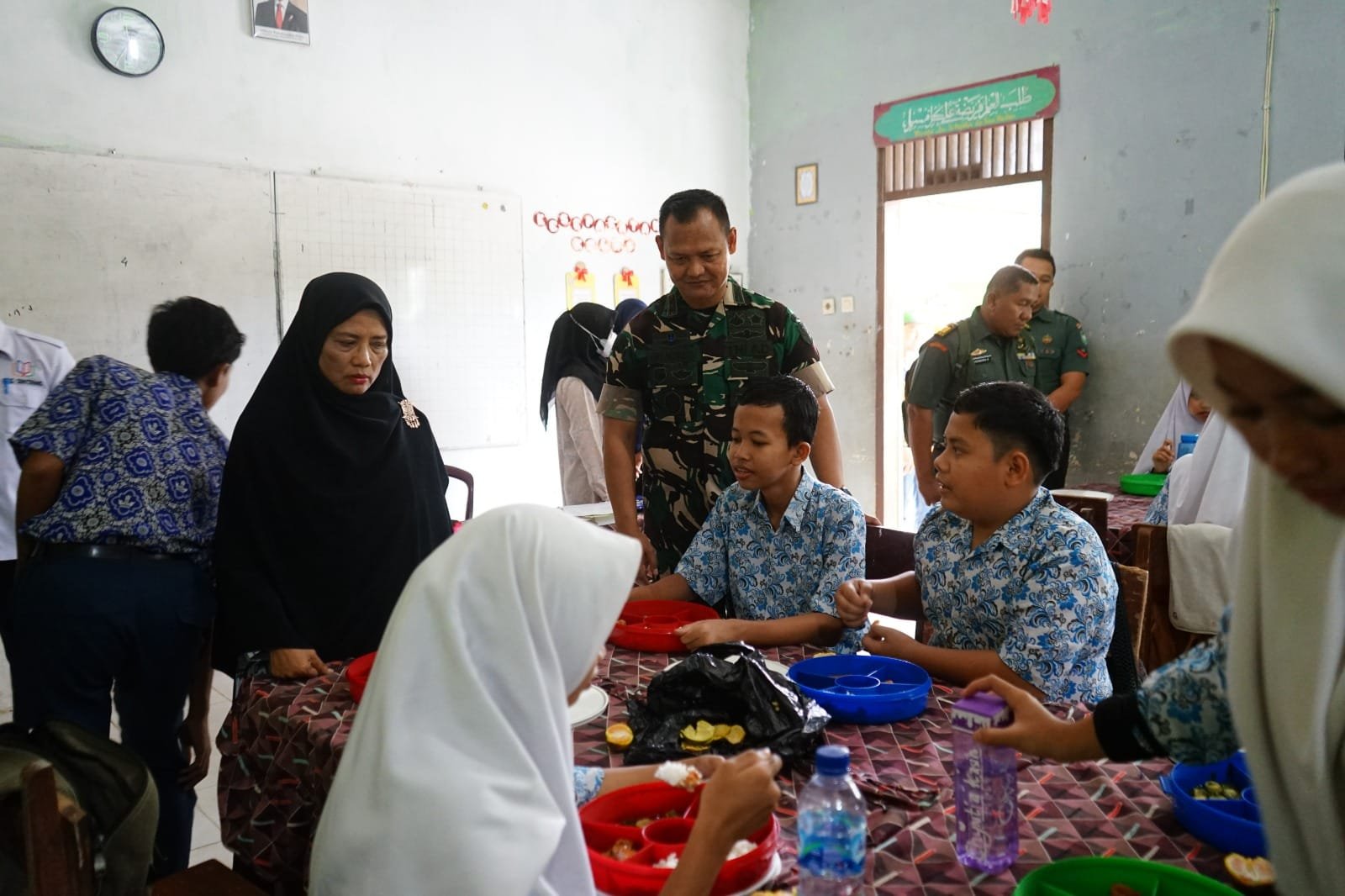 Komandan Kodim 0117/Aceh Tamiang Letkol Inf Andi Ariyanto, S.I.P., M.I.P., didampingi Pasi Ter Dim 0117/Aceh Tamiang Kapten Inf Hendra Swaskita melakukan pemantauan langsung pendistribusian Makan Bergizi Gratis program Presiden RI di SMP Negeri 2 Kejuruan Muda, Desa Sungai Liput, Kecamatan Kejuruan Muda, Kabupaten Aceh Tamiang, pada Rabu (15/01/2025)