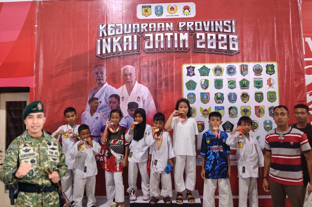 Karateka Sabaddha Kids Yonif 514/SY kembali mengharumkan nama satuan dengan meraih prestasi gemilang pada Kejuaraan Karate “KEJURPROV INKAI JATIM TAHUN 2026” yang digelar di GOR Pancasila, Surabaya, Minggu (18/01/2026).