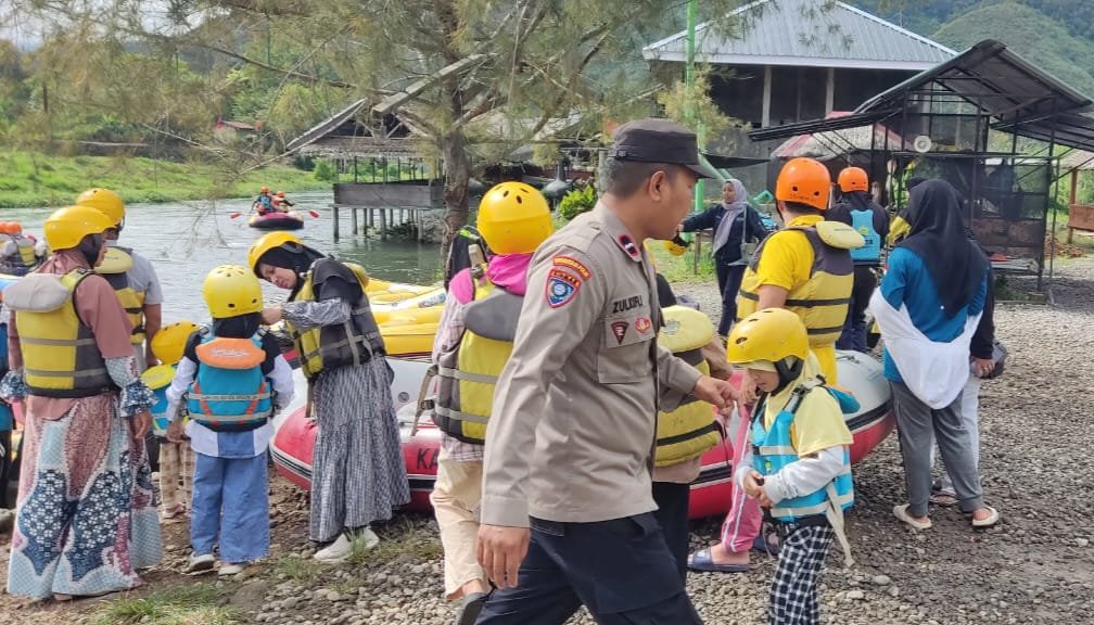 “Aktivitas masyarakat yang berlibur di dan berkunjung ke cafe dan Objek wisata Arung jeram tampai ramai. Sehingga kehadiran Polri sangat diperlukan agar bisa memberikan rasa aman dan nyaman kepada masyarakat lokal maupun dari luar daerah,” kata Denny.