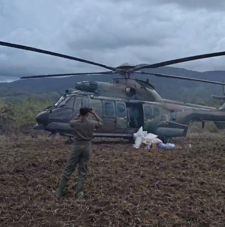 “Bantuan sudah mendarat siang ini. Kami sengaja koordinasi dengan Dinas Pangan untuk kirim via udara supaya lebih cepat sampai ke tangan warga,” jelas Fadlin.