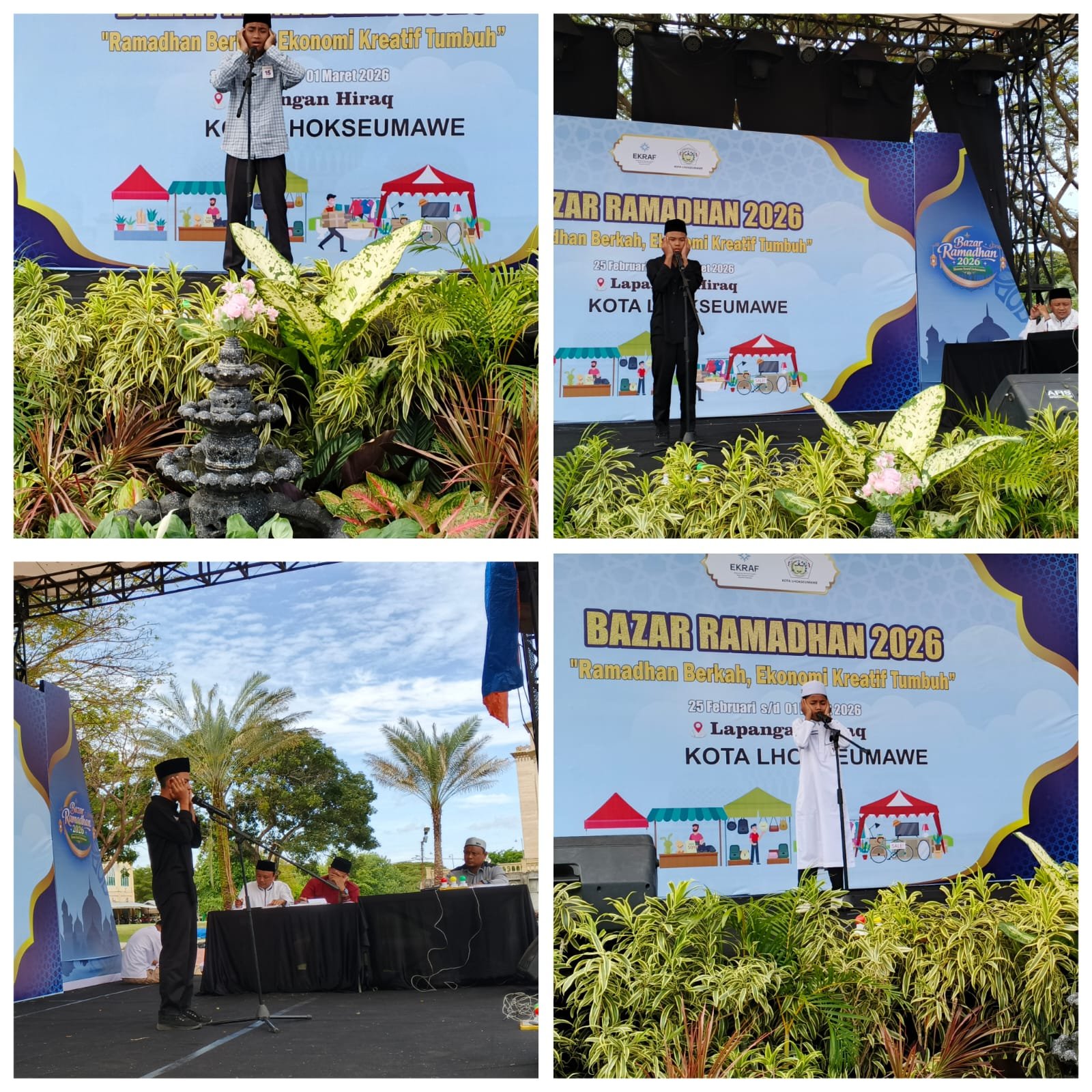 Lhokseumawe,Satupena.co.id: Suara adzan menggema di Lapangan Hiraq, Kota Lhokseumawe, Jumat (27/2/2026), saat lebih dari 50 peserta ambil bagian dalam lomba adzan yang menjadi rangkaian kegiatan Bazar Ramadhan 25 Februari–1 Maret 2026.