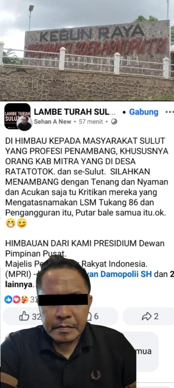 “Jangan biarkan hukum hanya tajam ke bawah tapi tumpul ke atas. Kami minta penyidik segera memeriksa Sehan Ambaru dan pihak-pihak lain yang diduga menjadi pelindung jaringan PETI di Ratatotok,” tambahnya.