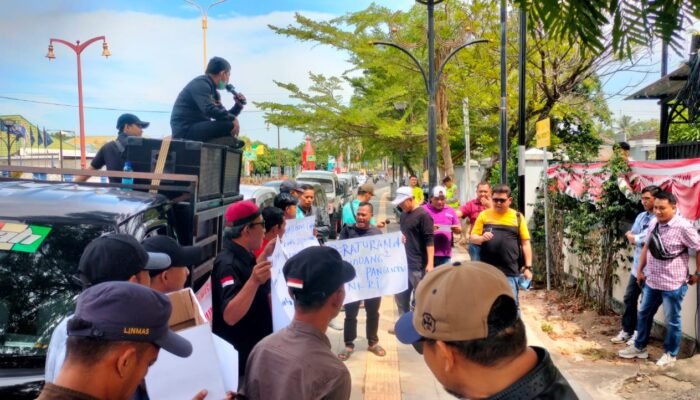 Lembaga Swadaya Masyarakat Pemerhati Organisasi Sosial dan Ekonomi Republik Indonesia (LSM-POSE RI) bersama lima organisasi masyarakat (ormas) dan LSM lainnya menggelar aksi unjuk rasa di depan Kantor Dinas Kominfo Muba, Dinas Perindustrian dan Perdagangan Muba, serta Kejaksaan Negeri Muba, Rabu (18/9/2024).