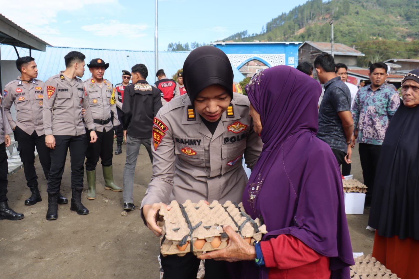 Mahasiswa Sekolah Tinggi Ilmu Kepolisian Lemdiklat Polri Angkatan 83/Widya Pratama Seva (WPS) melaksanakan kegiatan Pengabdian Masyarakat (Dianmas) berupa bakti sosial penyaluran sembako dan gotong royong pembersihan fasilitas ibadah di Kampung Mendale, Kecamatan Kebayakan, Kabupaten Aceh Tengah, Jumat (13/2/2026) mulai pukul 09.00 WIB.