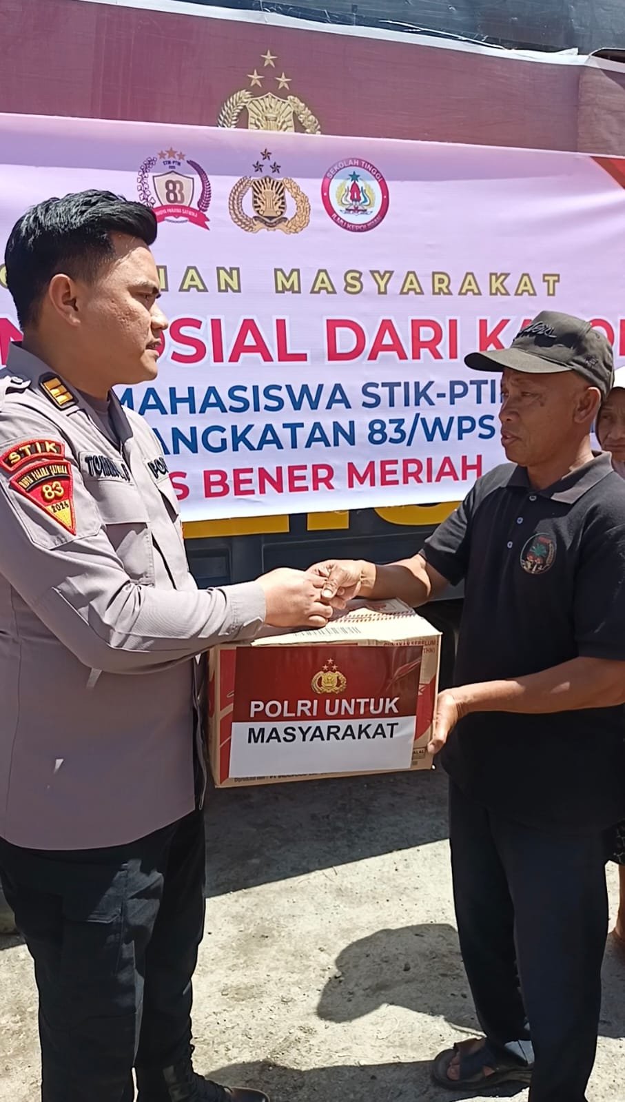 Mahasiswa STIK-PTIK Angkatan 83 Salurkan Bansos Kapolri Untuk Korban Banjir di Bener Meriah