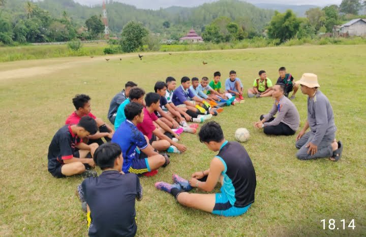 Kapolsek Linge Polres Aceh Tengah bersama personil Rabu 24 Juli 2024 sekira Pukul 17.00 wib di lapangan Sepak bola Isaq kecamatan Linge,