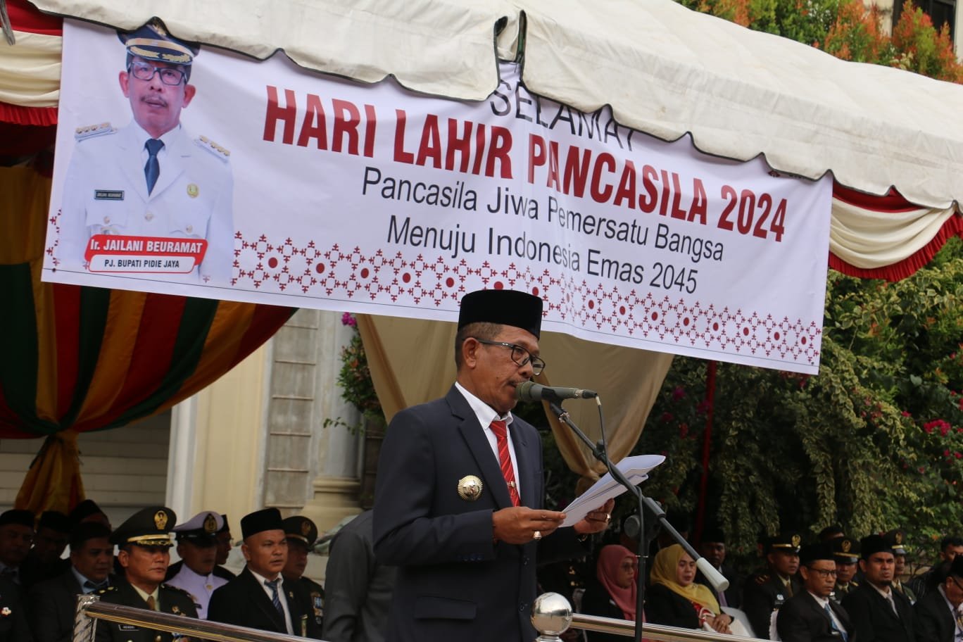 Pj Bupati Pidie Jaya Ir. H. Jailani bertindak sebagai Inspektur Upacara. Dalam amanatnya, ia mengajak seluruh peserta upacara untuk bersama-sama membangun bangsa sesuai dengan tugas dan fungsi masing-masing berdasarkan Pancasila.