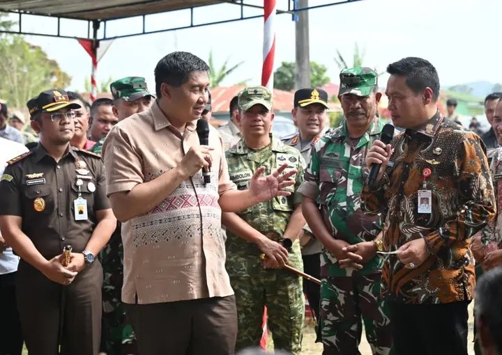 Mendagri Jenderal Polisi (Purn) Prof Tito Karnavian bersama Menteri Perumahan dan Kawasan Permukiman (PKP) Maruarar Sirait tinjau secara langsung program BSPS (Bantuan Stimulan Perumahan Swadaya) tahun anggaran 2026 di Kabupaten Humbang Hasundutan (Humbahas) tepatnya di Desa Nagasaribu IV Kecamatan Lintongnihuta, Kamis 26 Maret 2026.