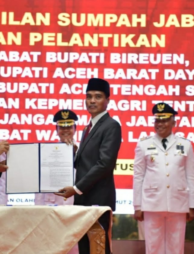 Selanjutnya, Jalaludin, Kepala Satpol PP dan EH Aceh sebagai Pj Bupati Bireuen dan Subhandy Sekretaris Daerah Aceh Tengah sebagai Pj Bupati Aceh Tengah.