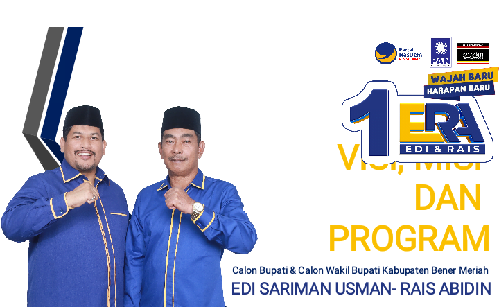 H.Edi Sariman Usman.S.Pdi dan Rais Abidin.SH ( ERA ) selaku pasangan calon Bupati dan Wakil Bupati Bener Meriah dengan nomor urut 1 ( Satu ) yang di usung oleh Partai NasDem dan didukung oleh Partai PAN seta Partai Gapthat menyampaikan visi dan misi sebagai calon Bupati dan Wakil Bupati Bener Meriah.