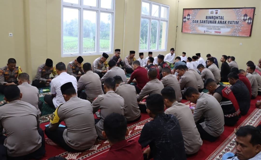 Pidie Jaya – Dalam rangka memperkuat mental spiritual dan mempererat ikatan sosial, Polres Pidie Jaya melaksanakan kegiatan Pembinaan Rohani dan Mental (Binrohtal) yang dirangkaikan dengan pemberian santunan kepada anak yatim pada Kamis (16/01/2025).