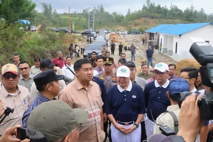 Menteri Perumahan dan Kawasan Pemukiman (PKP) Maruarar Sirait, S.IP dan Menteri Dalam Negeri (Mendagri) Drs. Tito Karnavian, M.A, Ph.D bersama Bupati Taput Dr. Jonius Taripar Parsaoran Hutabarat dan Wakil Bupati Dr. Deni Lumbantoruan tinjau progres pembangunan hunian tetap untuk masyarakat korban bencana hidrometeorologi Kecamatan Adiankoting, Desa Dolok Nauli, Kamis (26/03-2026).