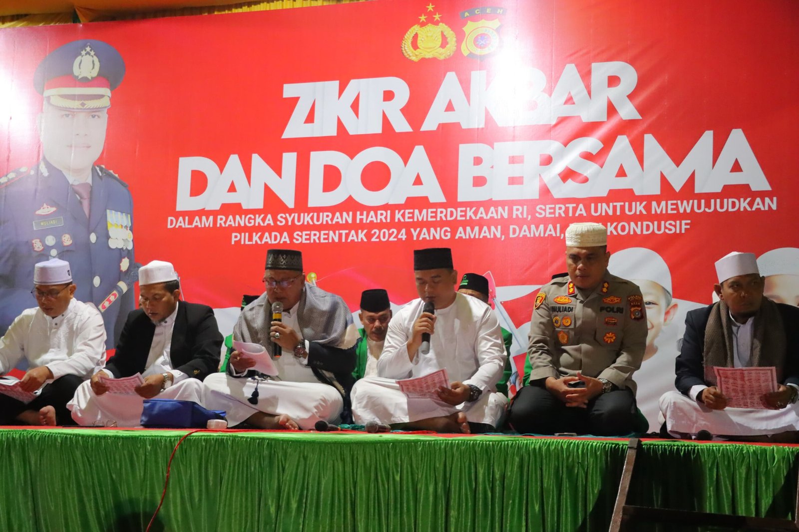 Kepolisian Resort (Polres) Aceh Tamiang menggelar zikir akbar dan doa bersama dalam rangka syukuran Hari Kemerdekaan RI ke- 79, yang dilaksanakan lapangan upacara Mapolres setempat Aceh Tamiang, pada Selasa, (13/08/2014).