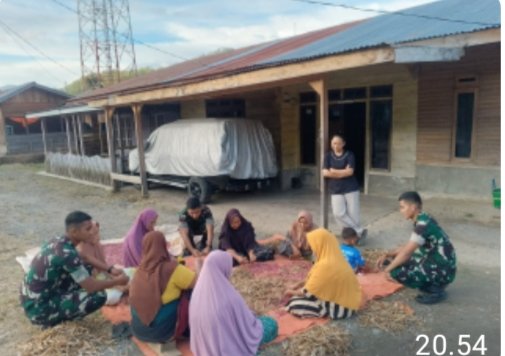 Anggota satgas TMMD ke 126 dari Yon TP 854 Dharma Kersaka di pimpin oleh Danki Kapten Inf Marijal Pane melaksanakan kegiatan anjangsana dgn masyarakat di Desa Kute Keramil sebagai wujud Kemanunggalan TNI dengan Rakyat.