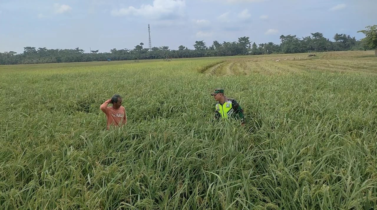 Babinsa Koramil 03/Seruway Serda Syahdan bersama petani mengecek tanaman padi siap panen dalam rangka ikut menyukseskan program ketahanan pangan bertempat di lahan milik Bapak Suprianto dengan luas lahan -+ 6 rante Anggota Poktan Bangun Rejo, di Desa Sei Kuruk Satu, Kecamatan Seruway, Kabupaten Aceh Tamiang. Selasa (07/05/2024)
