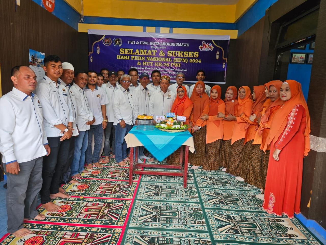 Lhokseumawe,1pena.co.ud– Ketua Persatuan Wartawan Indonesia (PWI) Sayuti Achmad didampingi Ketua Ikatan Keluarga Wartawan Indonesia (IKWI) Kota Lhokseumawe, Widia Ratna Nasution, mengelar Hari Pers Nasional (HPN) 2024 dan HUT Persatuan Wartawan Indonesia (PWI) Ke-78 beserta anggota PWI Lhokseumawe, kegiatan tersebut berlangsung di Kantor PWI Kota Lhokseumawe Desa Mon Geudong, Kecamatan Banda Sakti Kota Lhokseumawe Pada Jumat pagi (09/02/2024). Acara tersebut diawali dengan berdoa bersama puluhan anak yatim dan sajian kuah belangong kari kambing.