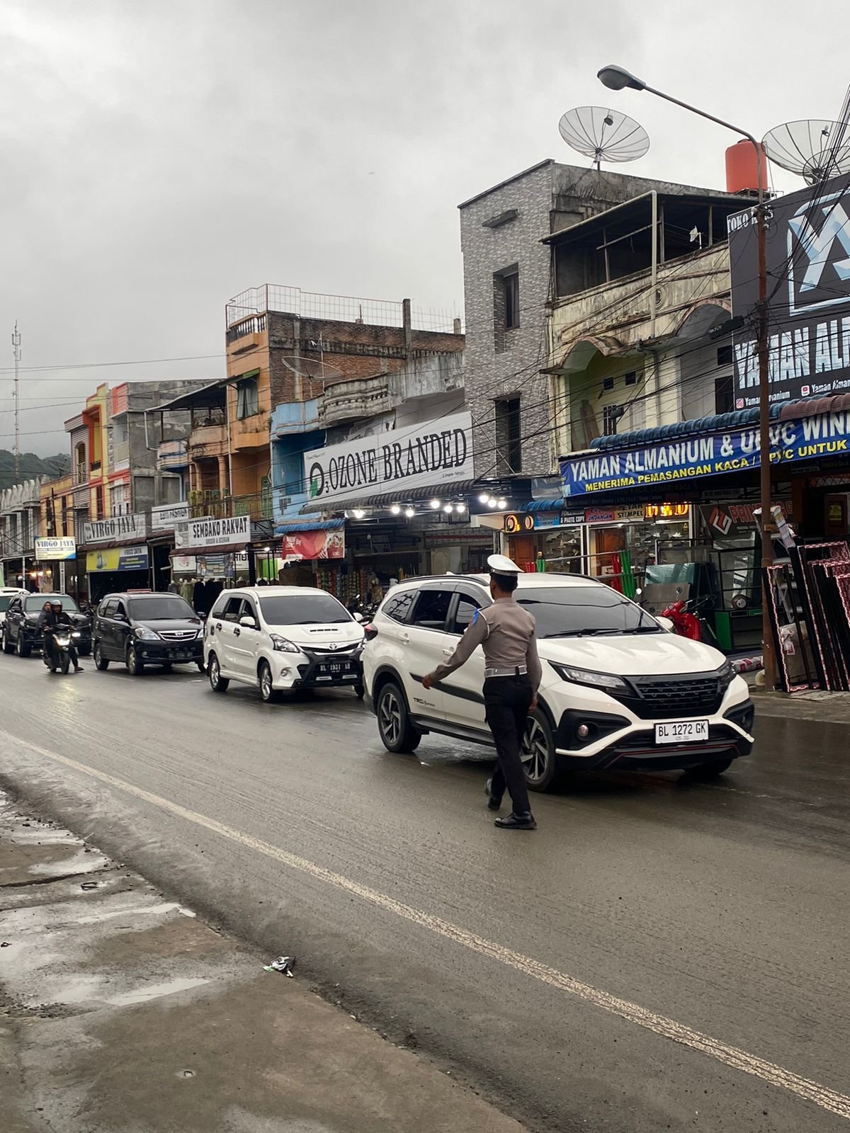 Pada Jumat, 21 November 2025 sekitar pukul 18.30 WIB, personel Satlantas melaksanakan patroli serta pengaturan arus lalu lintas di sejumlah titik padat di seputaran Kota Takengon.