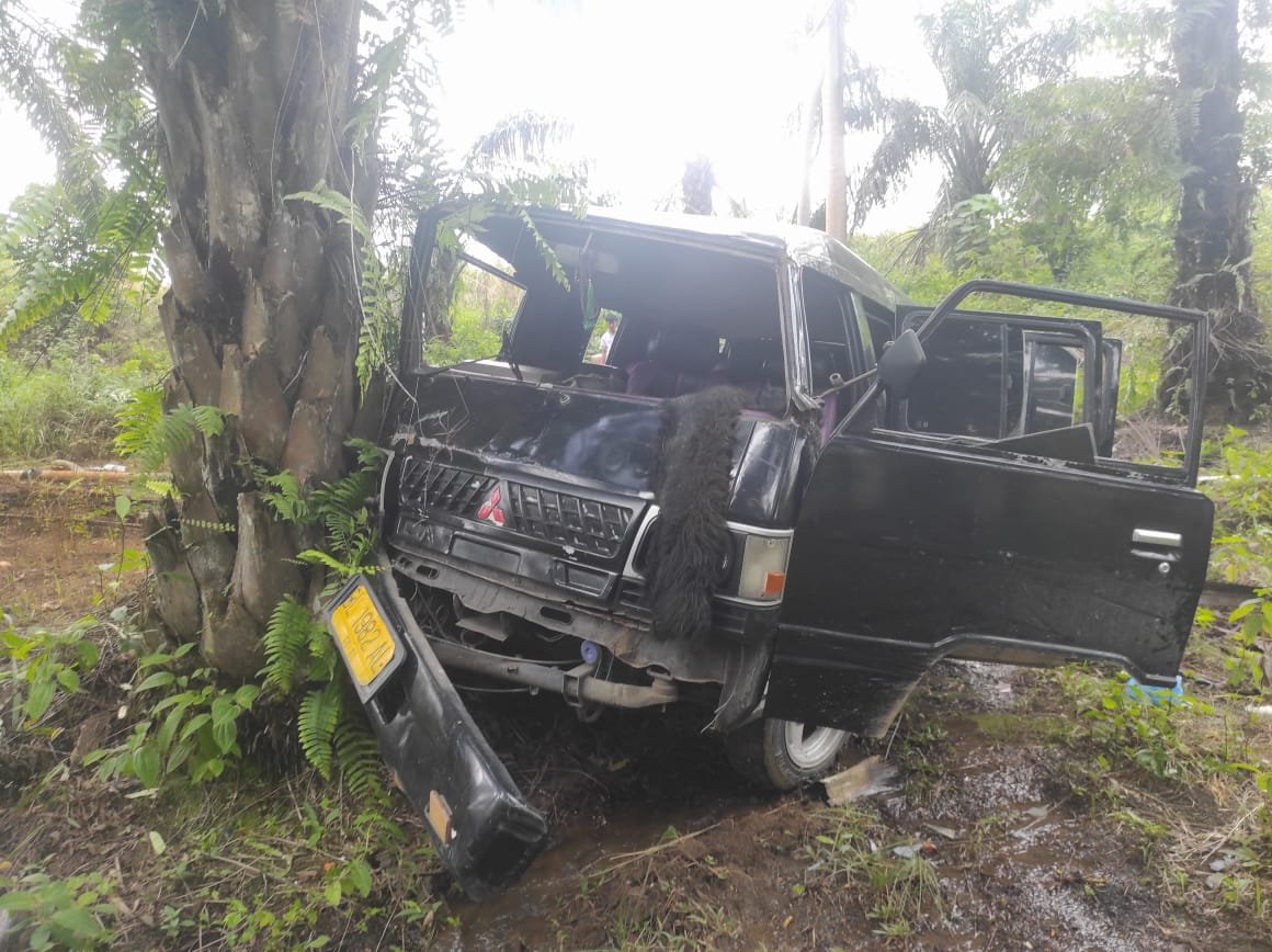 “Berdasarkan keterangan awal di lapangan, terod stir mobil diduga lepas sehingga kendaraan kehilangan kendali dan menarik ke sisi kanan jalan. Akibatnya, mobil keluar badan jalan dan masuk ke kebun sawit warga dengan kedalaman sekitar 20 meter,” ujar AKP Suci.