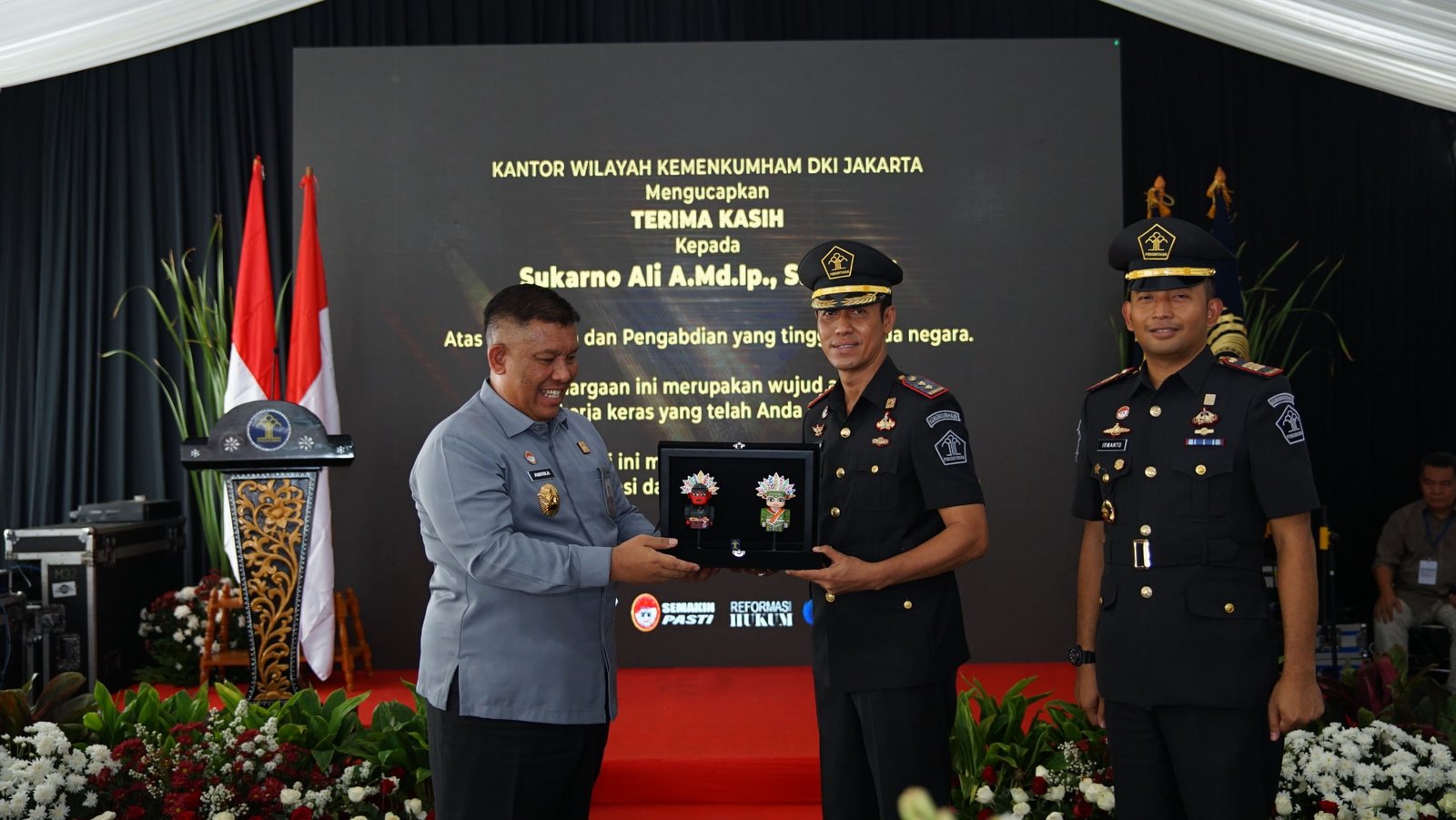 Kegiatan ini di hadiri oleh Kepala Kantor Wilayah Kemenkumham DKI Jakarta, R.Andika Dwi Prasetya didampingi Kepala Divisi Administrasi Mutia Farida serta Jajaran Kepala UPT Pemasyarakatan dan Keimigrasian menyaksikan pisah sambut Kepala Rumah Tahanan Kelas I Cipinang dari Sukarno Ali kepada Irwanto Dwi Yhana Putra.