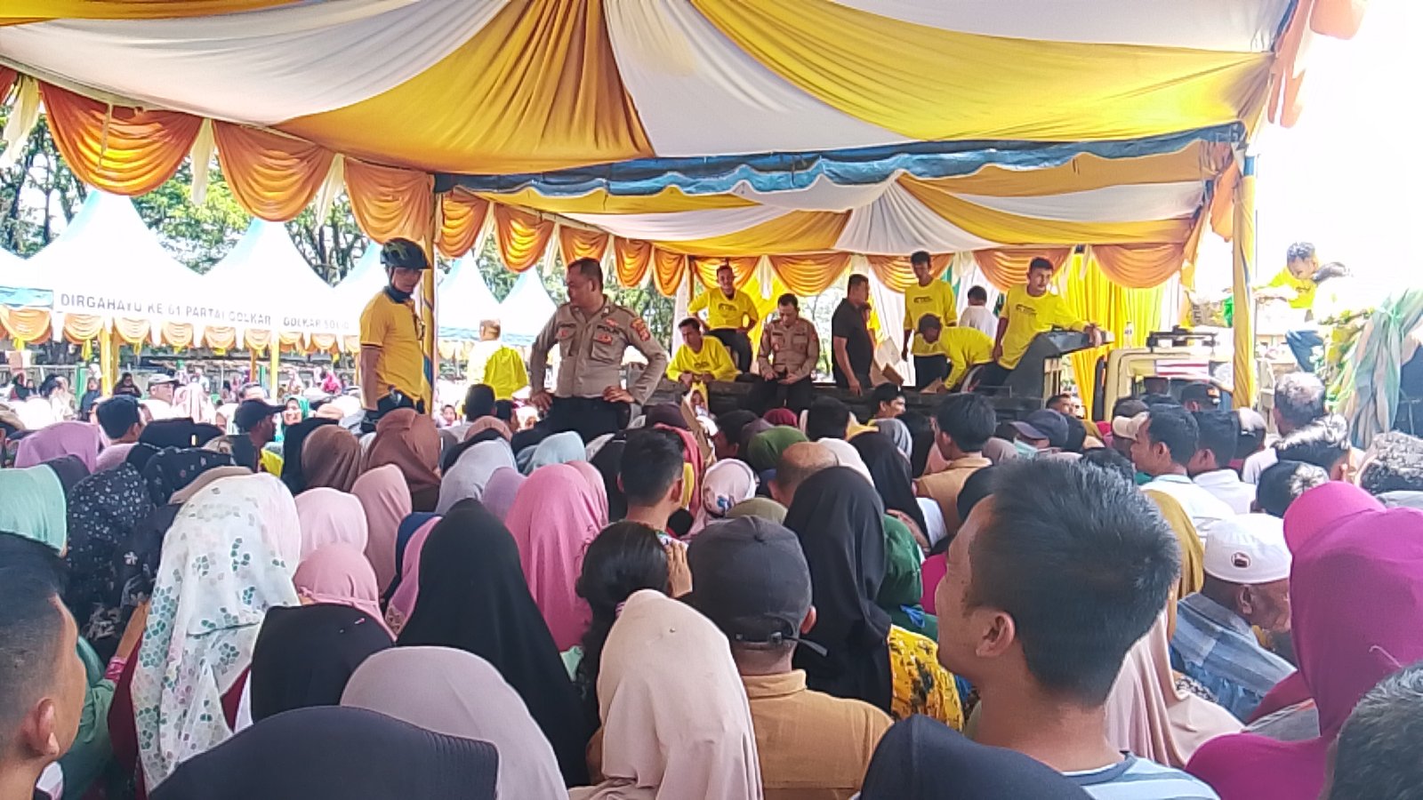HUT ke-61 Partai Golkar di Kabupaten Aceh Tenggara, mengelar pasar murah, yang berlangsung di Lapangan Pemuda, Kompleks Pelajar, Babussalam, Aceh Tenggara, Minggu 5 Oktober 2025.