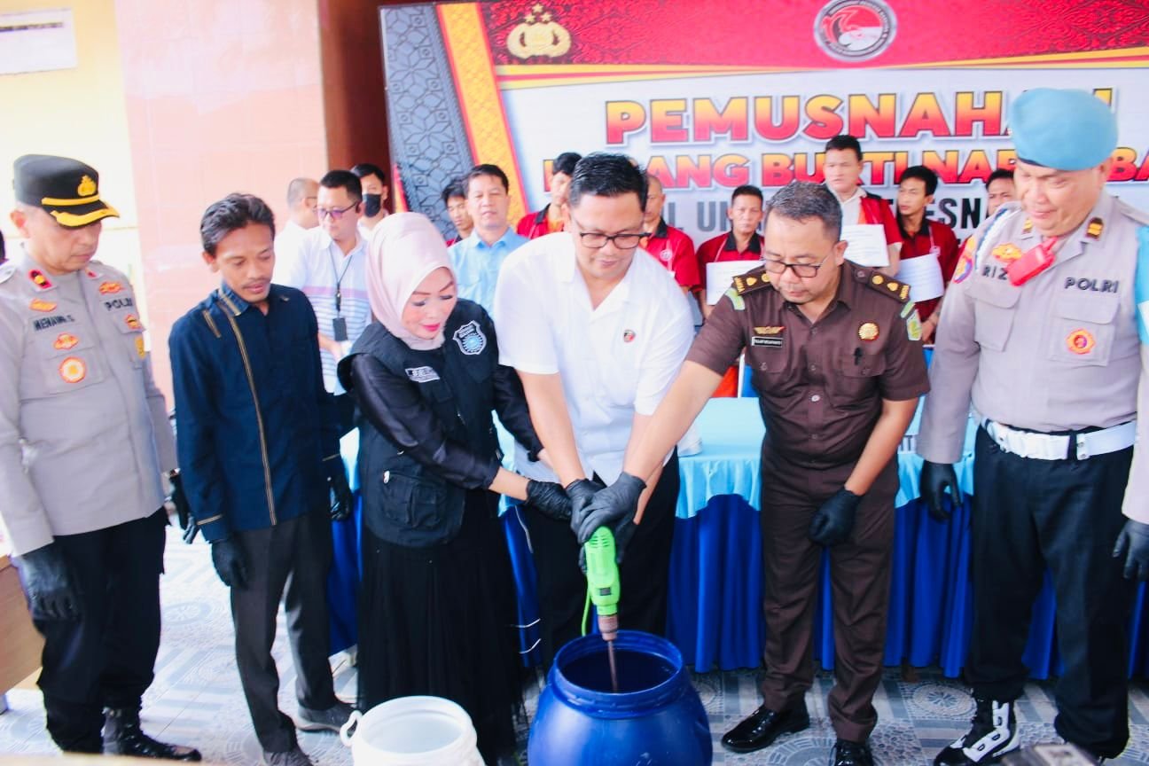 Pemusnahan 1.552,15 gram sabu tersebut dipimpin Wadir Resnarkoba AKBP Harrisandi Sik, bersama perwakilan dari Kejati Fijar Wijayanto SH, tim dari Bidlabfor, pengacara tersangka dan perwakilan GANN Sumsel serta awak media.