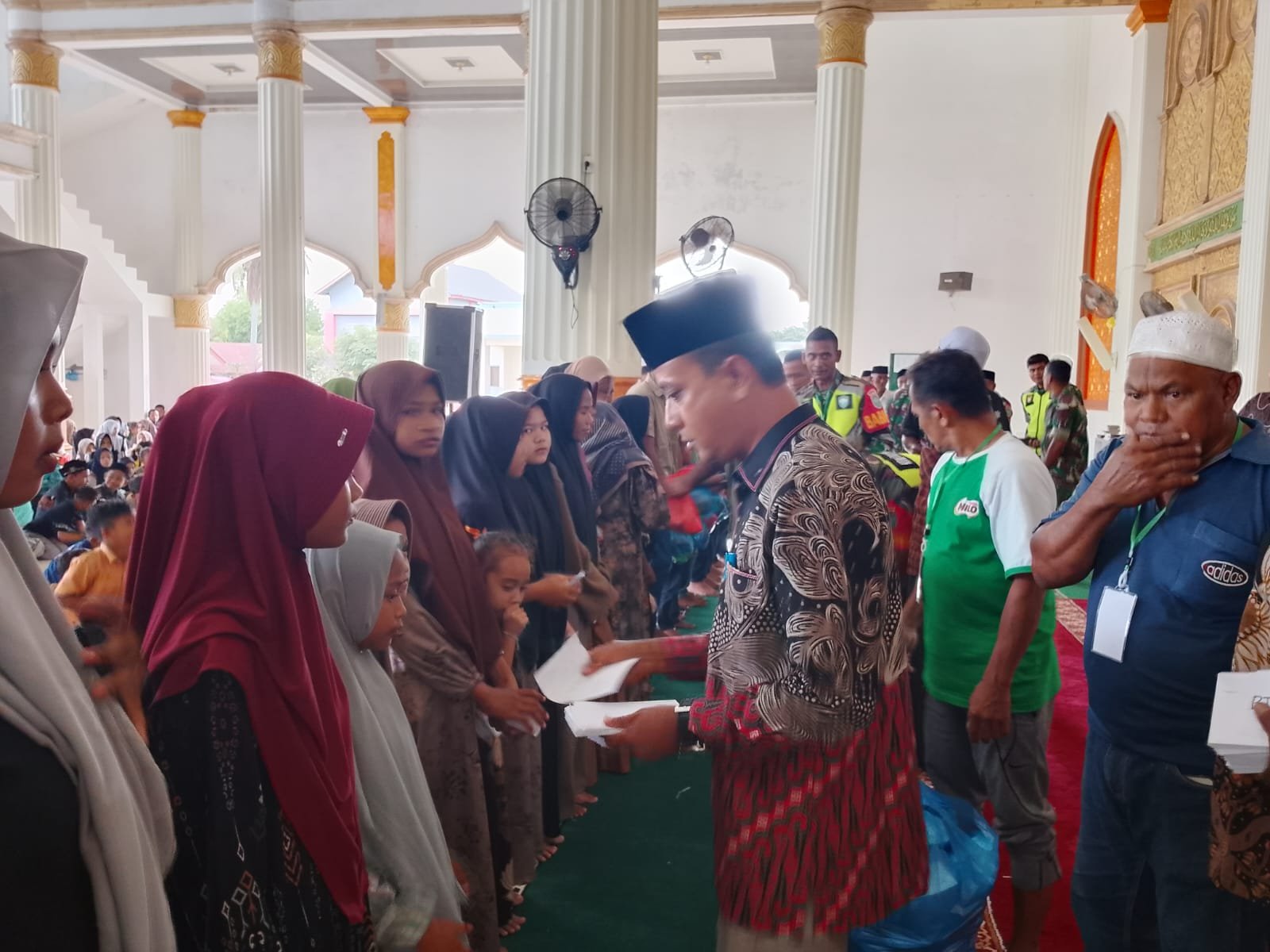 Adapun anak yatim yang mendapat santunan sebanyak 297 orang dengan mendapatkan uang tunai dan 1 satu paket nasi yang diserah oleh camat muara tiga
