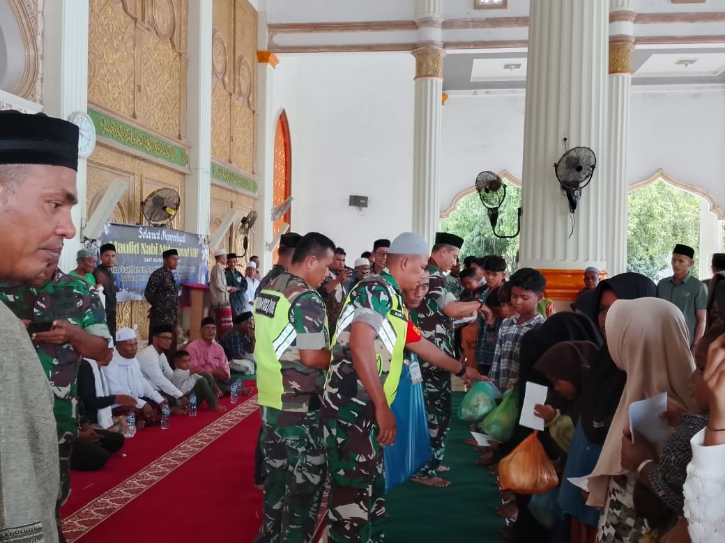 Sigli – Muspika bersama tokoh Kecamatan muara TIga Kabupaten Pidie Peringatan hari besar Islam (HBI) dalam rangka merayakan Maulid Nabi Muhammad SAW, serta santunan anak yatim Piatu sebanyak 297 yang terdiri dari 18 desa , Perayaan hari besar Islam tesebut yang dipusatkan di mesjid Baiturrahim Muara tiga (6/9/2025)