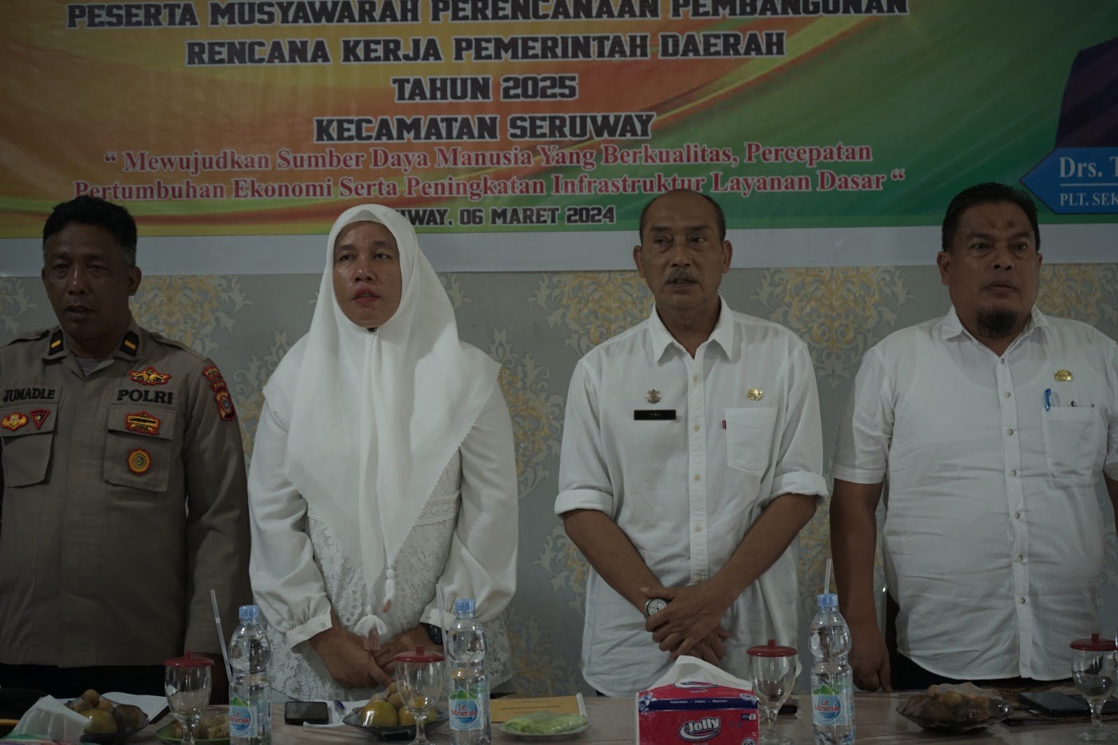 Mewakili Pj. Bupati Aceh Tamiang, Plt. Sekretaris Daerah, Drs. Tri Kurnia membuka secara resmi Musrenbang di Kecamatan Seruway. Di kesempatan itu, Tri menyampaikan agar dalam menyusun perencanaan pembangunan kedepan, utamakan dulu kebutuhan dan skala prioritas untuk kepentingan dan kesejahteraan masyarakat, terutama yang paling penting yaitu penanganan stunting dan kemiskinan ekstrim.