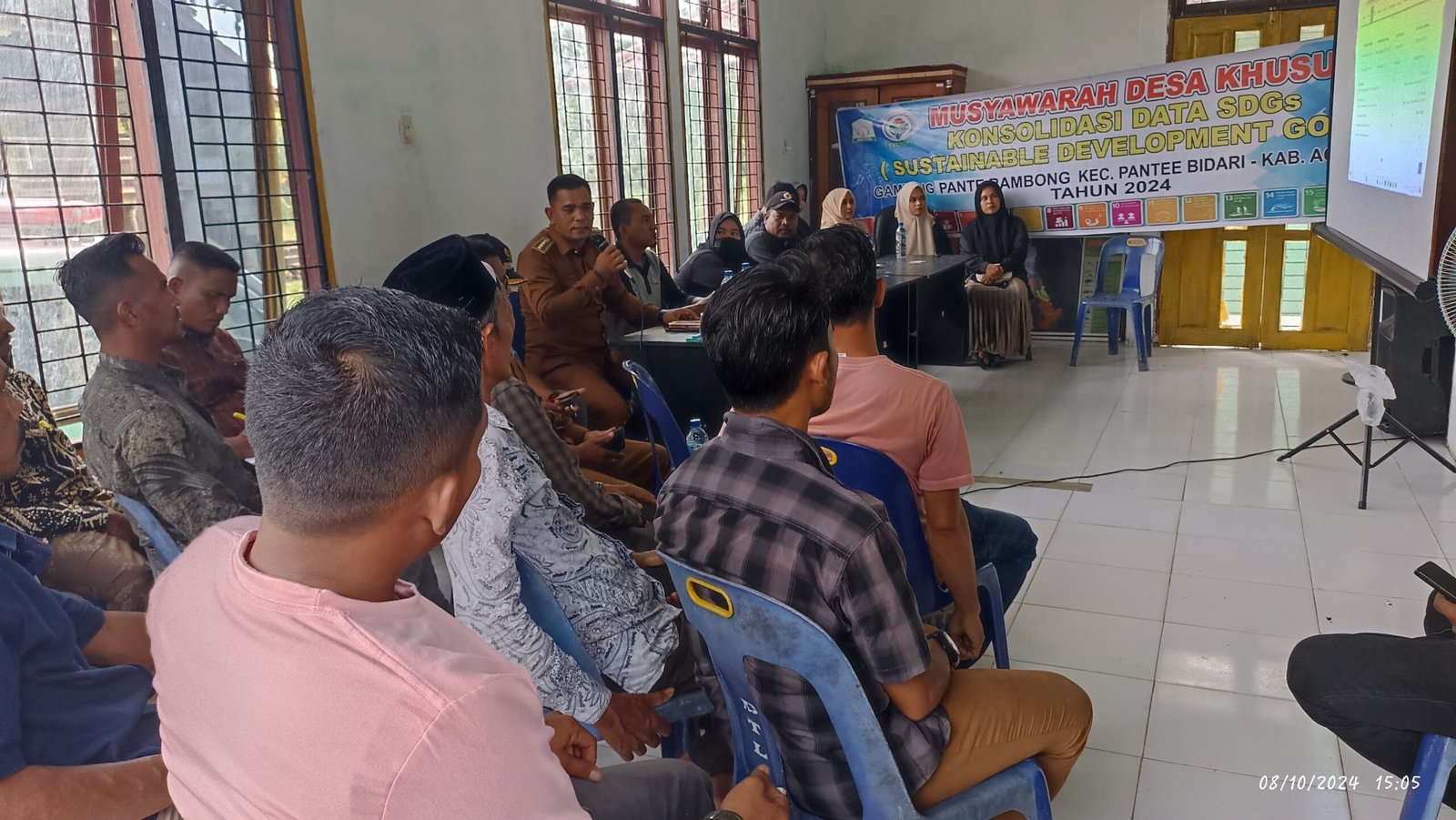 Musyawarah ini bertujuan untuk mengkonsolidasikan data yang telah diperoleh dari pendataan SDGs sebelumnya dan memastikan bahwa informasi yang dikumpulkan akurat serta relevan untuk perencanaan pembangunan desa yang berkelanjutan. Keuchik Hermanto dalam sambutannya menekankan pentingnya data yang valid dalam merumuskan kebijakan dan program pembangunan.