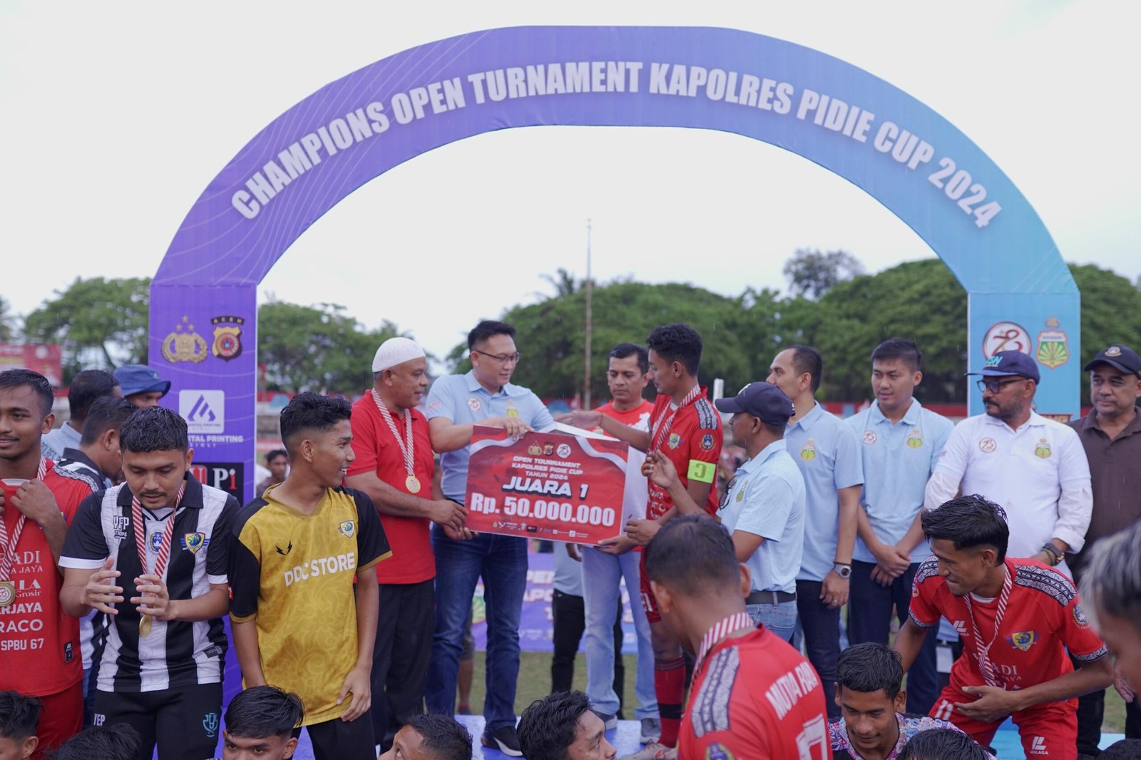 Sehingga Mutiara Raya FC berhak membawa pulang hadiah pertama Rp 50 juta dan Piala yang serahkan langsung oleh Kapolres Pidie AKBP Jaka Mulyana, SIK, MIK.