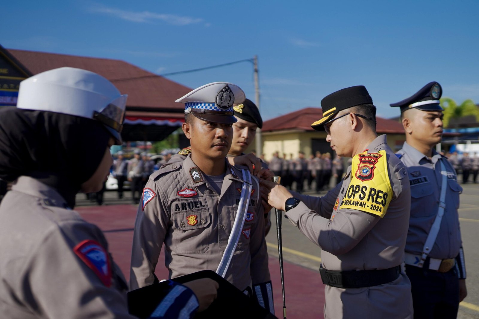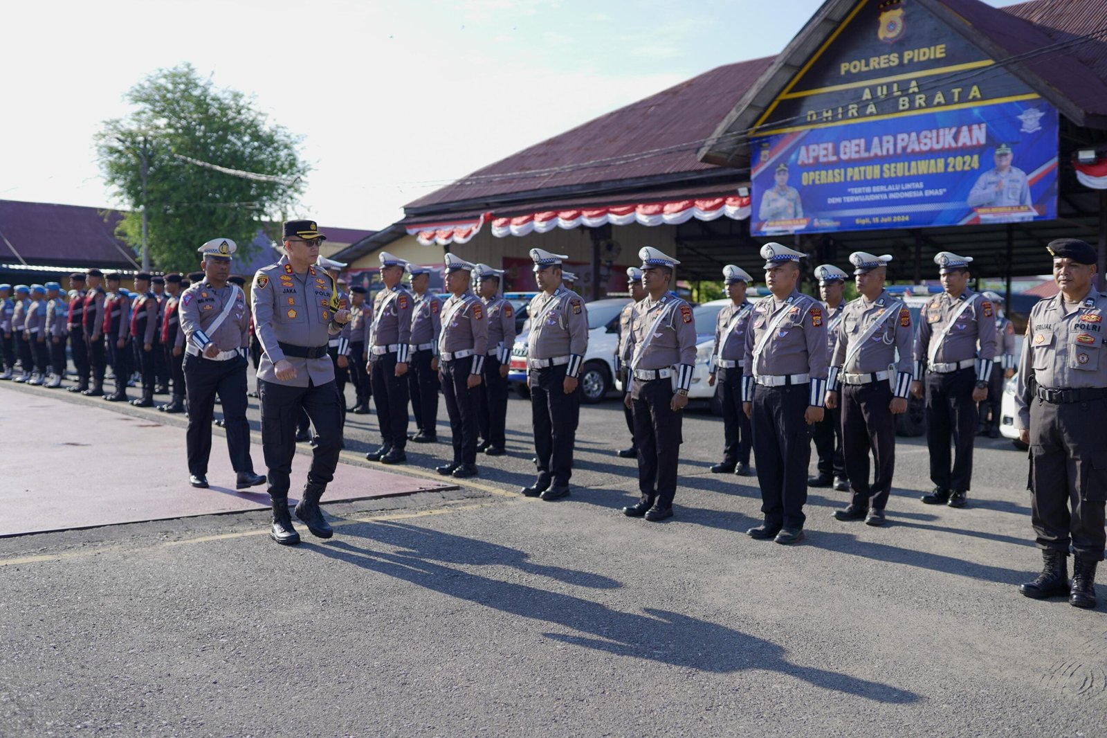Dalam apel tersebut, Kapolres Pidie AKBP Jaka Mulyana, S.I.K., M.I.K bertindak selaku Inspektur Apel, Kasat Lantas Iptu Muhammad Gifari Syarifuddin STrK, SIK, M.Si selaku Perwira Apel dan Ipda M. Aiyub selaku komandan apel.